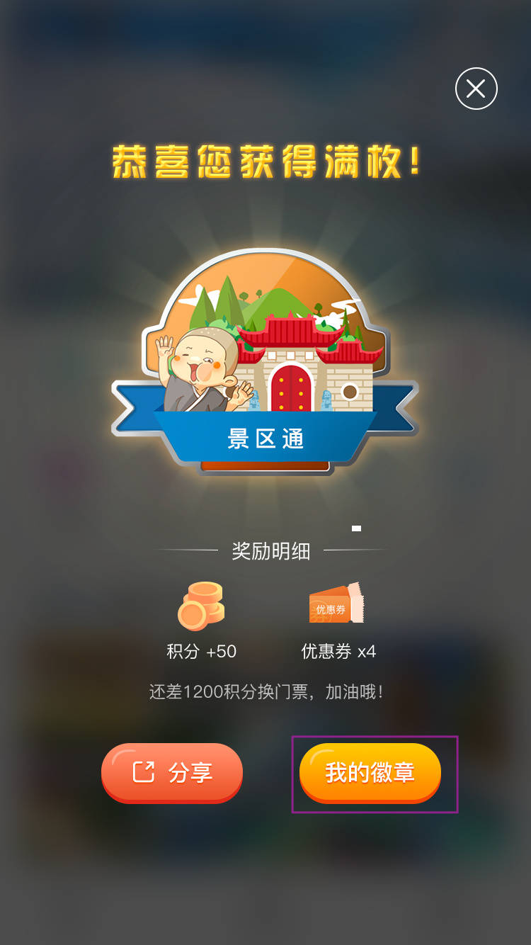 6.点击转发石友,或者分享到好友圈,体例主动天生海报,好友点击幼标准即可进入“一机旅游”玩集徽章啦。√ 1 . 积分可能兑换商城礼品。√ 2 . 优惠券可能直接当现金券抵用。(得胜领徽章)