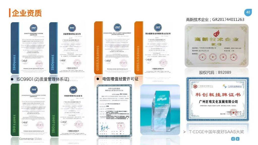 国度级高新时间企业、广州股权核心科创板挂牌企业、广东省守合同重信赖企业、ISO901质料束缚体例认证、2018行业最具影响力品牌、广东省博物馆特许坐褥商、国度科技30多项软著述权、飞马旅星驱明星企业、佛山市南海区文明进展参谋、北京国际旅游构造大奖、T-EDGE中国好SAAS大奖、中国都会文创旅游商品银奖.中国景区协会授予“景区优质供应商”、中国旅游商品大赛金奖、铜奖等多项奖项、广东计划之星创意计划银奖、佛山记忆品创意计划大赛铜奖.